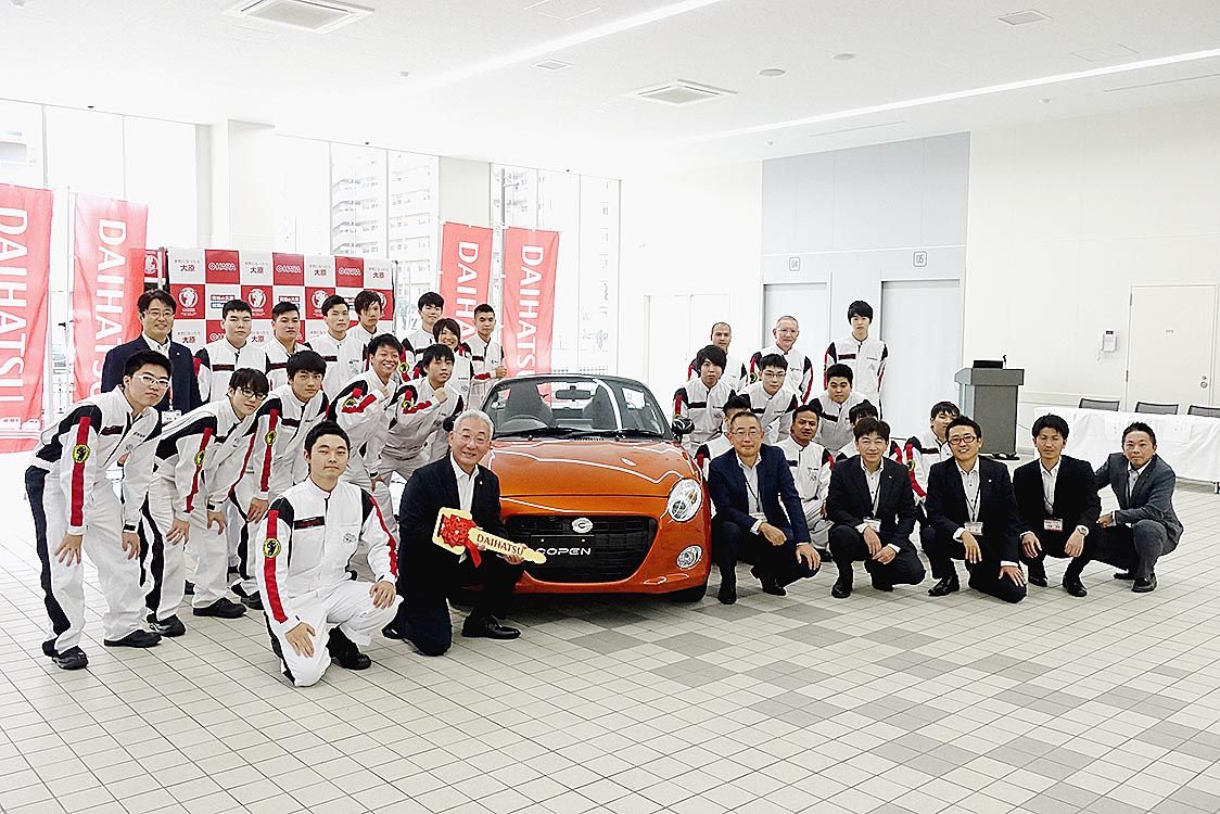 【大分】大分ダイハツ(上田稔哉社長)と北九州ダイハツ(勢隆社長)とダイハツ工業はこのほど、今年4月に開校した大原自動車工科専門学校大分校に教材用として「コペン」を寄贈した=写真。大分市の同校で平田浩司校長と学生24人が参加し寄贈式を開催。...