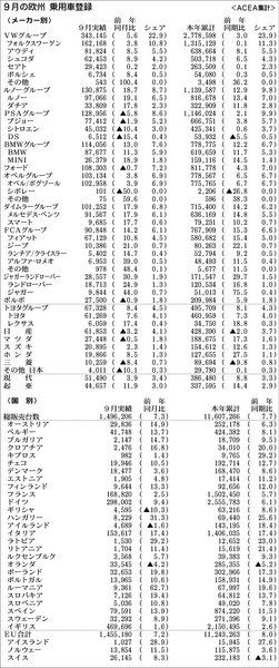【9月の欧州 乗用車登録】