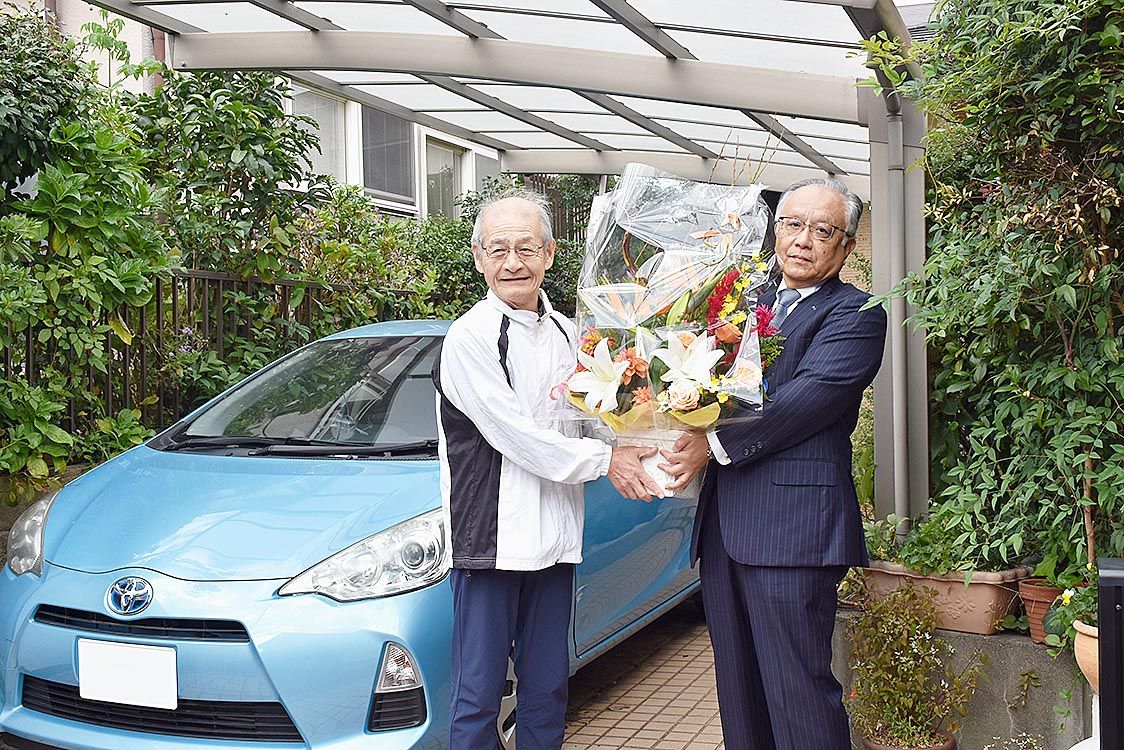 横浜トヨペット(宮原漢二社長、横浜市中区)は9日、同社湘南辻堂店の長年のユーザーで、今年ノーベル化学賞に決まった旭化成の吉野彰名誉フェローに、同賞受賞を祝した花束と記念品を贈呈した。同社の斉藤薫代表取締役専務と松浦良彦執行役員が吉野氏の自...