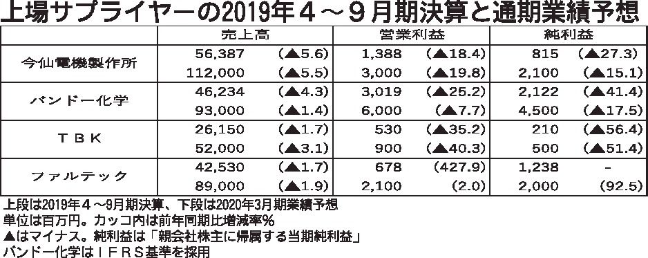 上場サプライヤーの2019年4~6月期決算と通期業績予想