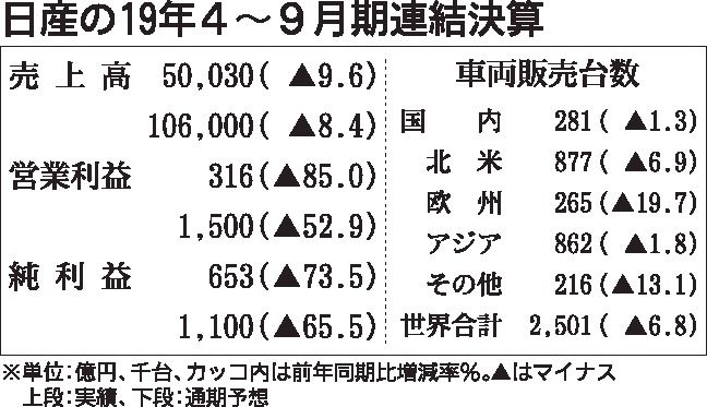 日産自動車は12日、2020年3月期の純利益見通しを期初予想の1700億円から1100億円に下方修正し発表した。為替の影響に加え、主力の米国の販売台数が奨励金の縮小で低迷したことで業績を大幅に見直した。通期の世界販売台数も期初の見通しから...