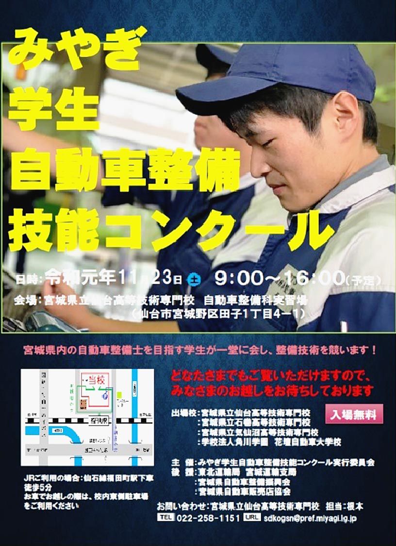 みやぎ学生自動車整備技能コンクール実行委員会(渡辺龍明会長)は23日、仙台市宮城野区の県立仙台技術専門校で「第1回みやぎ学生自動車整備技能コンクール」を開催する。県内の自動車整備士養成校の4校などが連携してコンクールを主催するのは今回が初...