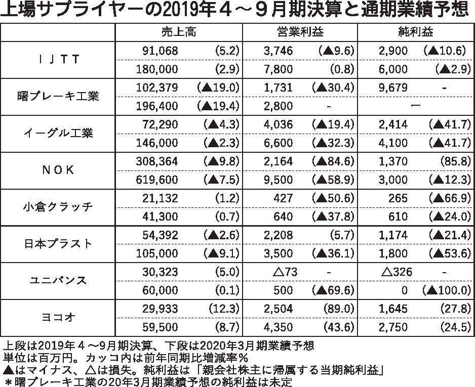 上場サプライヤーの2019年4~6月期決算と通期業績予想