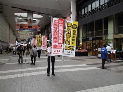 日本自動車連盟(JAF)福岡支部(太田憲男支部長)などは7日、福岡市内の最大の繁華街である天神地区の中心部で「税制改正要望に関する街頭活動」を行った。 活動には、自動車税制改革フォーラムのメンバーである日本自動車販売協会連合会(自販連)福...