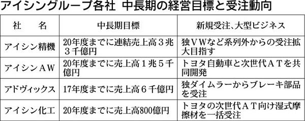2020年度までに連結売上高を3兆3千億円(13年度比16・9%増)に引き上げる長期目標を打ち出すアイシン精機。達成にはグループ各社による系列外受注の拡大が鍵となりそうだ。現在はトヨタ自動車以外の受注が約5割に達するアイシン・エィ・ダブリ...