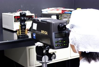 メーターやスイッチなどに内蔵されるLED(発光ダイオード)照明。朝日ラバーはシリコーンゴムキャップを使い、何万色もの光を作り出す技術を持っている。白河工場(福島県白河市)はLED照明の生産を拡大するため2006年に稼働した国内最新の工場だ...