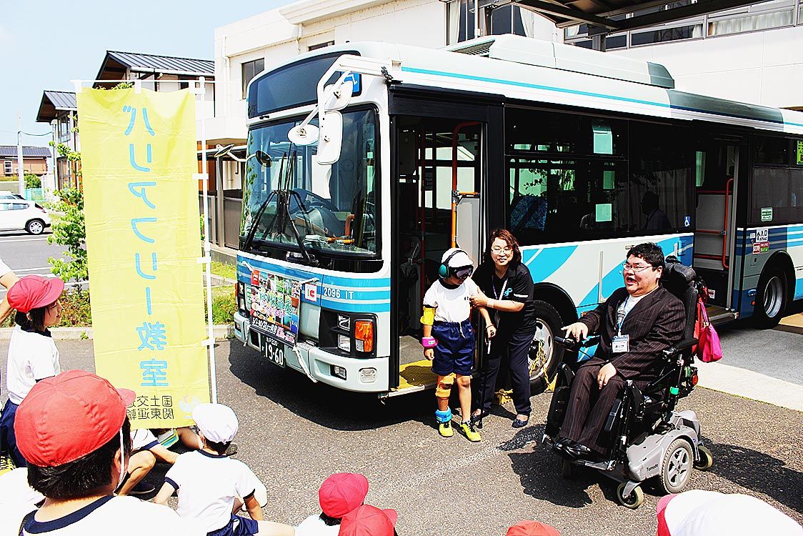 【水戸】関東運輸局茨城運輸支局(辻正剛支局長)は、潮来市立潮来小学校で「交通バリアフリー教室」を開催した=写真。同校の4年生30人が参加し、ノンステップバスを使用した車いす利用体験と高齢者擬似体験を実施した。 茨城運輸支局では高齢者や障が...