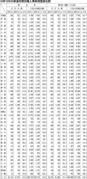 【16年10月の都道府県別輸入車新規登録台数】