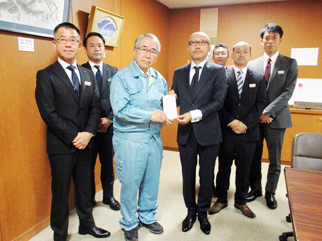 【水戸】関彰商事(関正樹社長)は、台風19号で被災した福島県の郡山、須賀川、いわきの3市に災害復旧対策・復興事業の義援金として100万円ずつの計300万円を寄付した=写真。 セキショウふれあい基金を活用して今回寄付したもの。同基金は199...