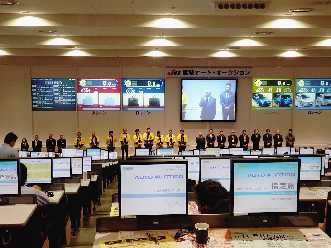 【大和】宮城県中古自動車販売商工組合(鹿野利德理事長)は、大和町の常設中古車オークション会場(AA)で「青年部担当ビッグ記念AA」を開催した=写真。台風19号で被災した組合事業場があったなか、青年部を中心にタマ(車両)集めに取り組み、出品...