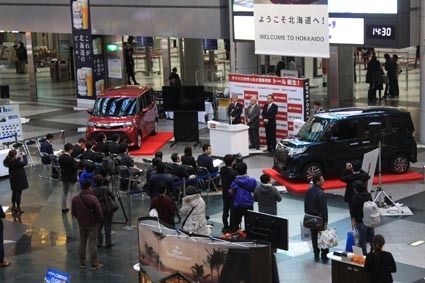 9日に発売となった新型トール2ボックスワゴン。販売するトヨタ系、ダイハツ、スバルディーラーは、スズキ「ソリオ」の対抗馬の投入に期待を寄せている。道内各地で開催された記者発表会の様子をまとめた。 ダイハツ北海道(細田真一社長)、北北海道ダイ...