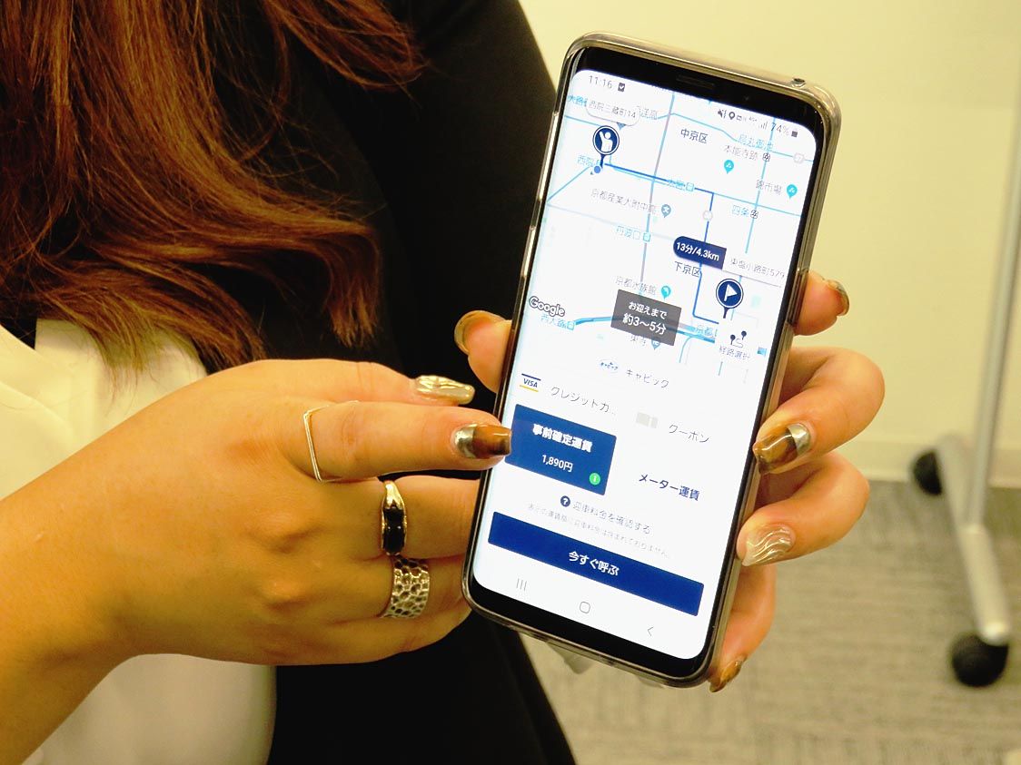 タクシー配車アプリを活用して乗車前に運賃を確定する事前確定運賃が15日に京都でスタートした。同日には近畿運輸局が京都市内で、アプリを使い運賃と経路を確定してタクシーを呼ぶデモをメディア向けに実施した。今後は大阪と神戸にも新サービスが広がる...