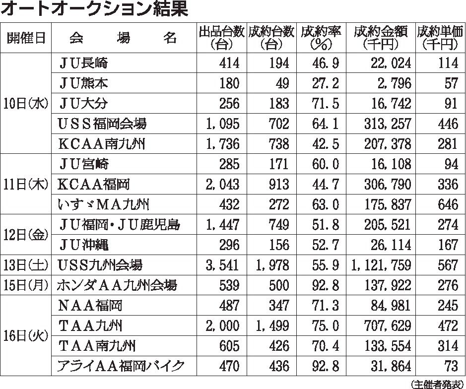 〈オートオークション結果〉九州地区 2025/11/3~11