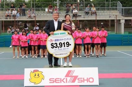 【水戸】関彰商事(関正樹社長)主催の「セキショウ国際女子オープンテニストーナメント(セキショウチャレンジオープン)2014」がこのほど、つくば市の筑波北部公園テニスコートで開催された。シングルス決勝は第7シードの波形純理選手(北日本物産所...