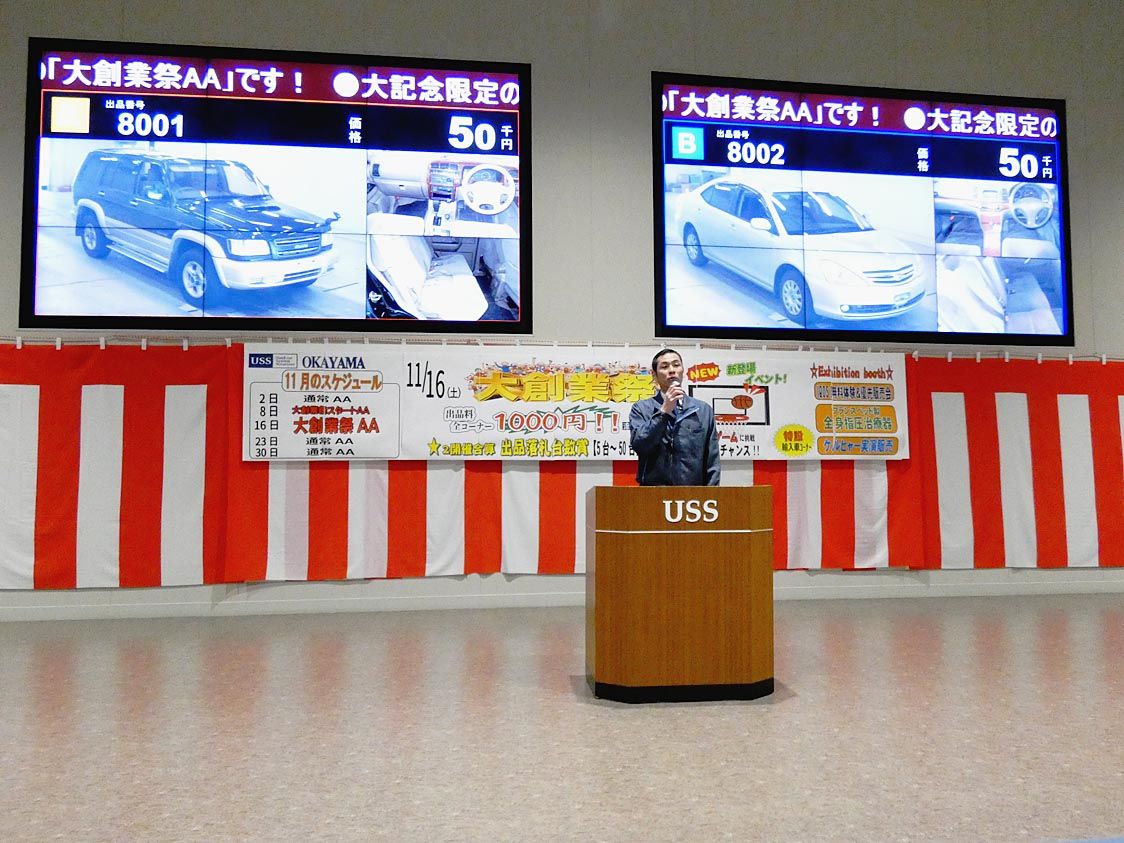 【岡山】ユー・エス・エスが運営するUSS岡山会場は16日、岡山県赤磐市の常設会場で年間4大イベントのひとつで年内最後の大記念オークション「大創業祭AA」を開催した=写真。出品台数は2431台で、成約率64・29%の実績だった。 開始前のセ...