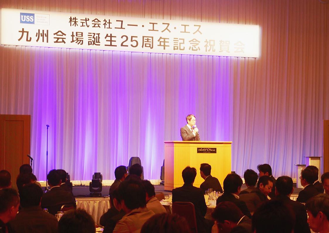 ユー・エス・エス(USS)は15日、福岡市博多区のホテルで「九州会場誕生25周年記念祝賀会」を開いた=写真。取引先関係者ら160人を招いた式典で、25周年の節目を祝った。 主催者を代表し、USS九州会場の新美幸夫会場長が「皆様のお力添えに...