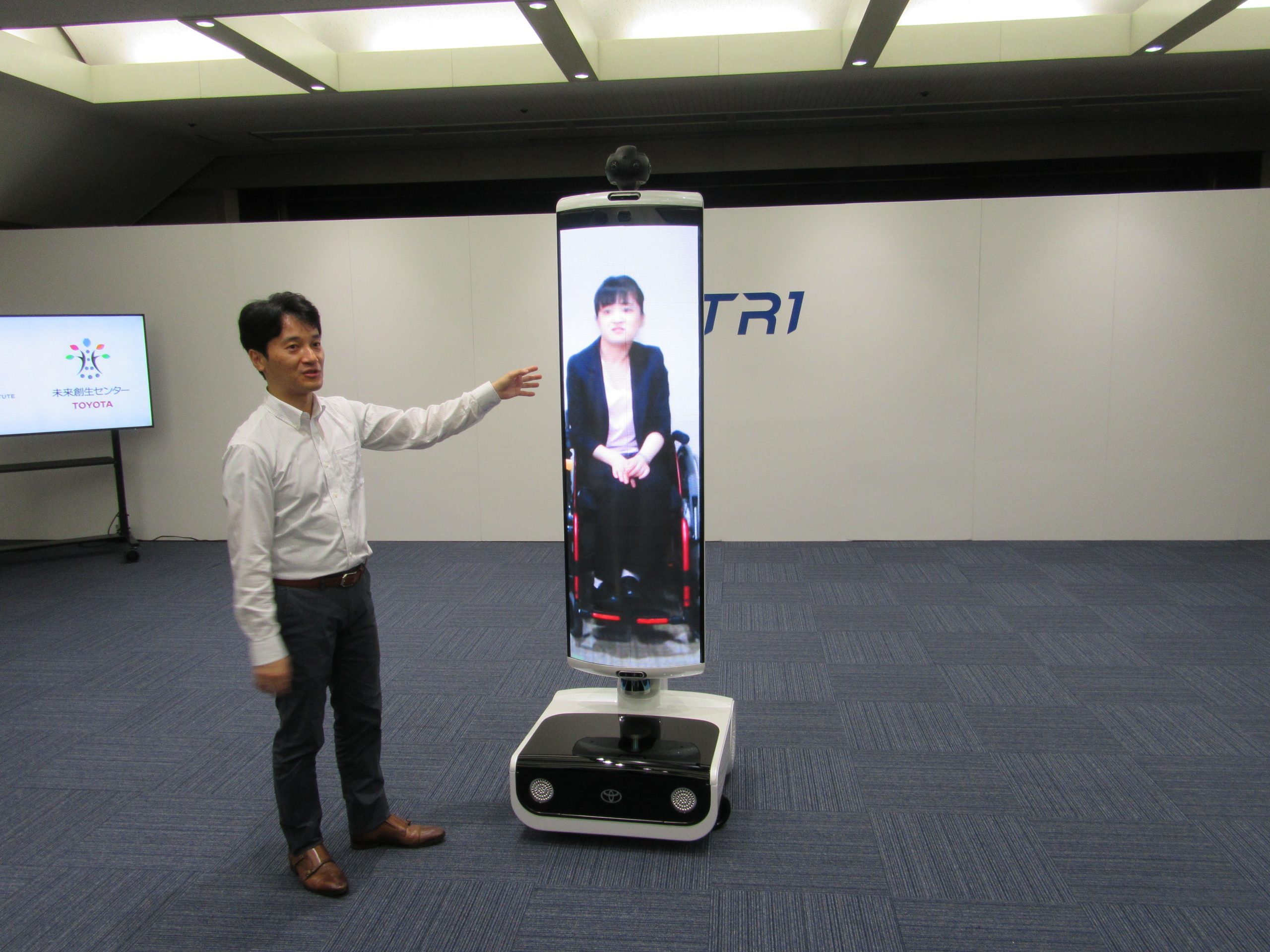 米国のトヨタ・リサーチ・インスティチュートが開発した遠隔地間コミュニケーションサポートロボット「T-TR1」は、カメラとディスプレイを搭載した移動型ロボット。遠隔地にいる人をディスプレイで表示したロボットが遠隔地からの操作で移動できる。大会に来ることができない人が、仮想的に参加してコミュニケーションをとる機会の提供を目指している。