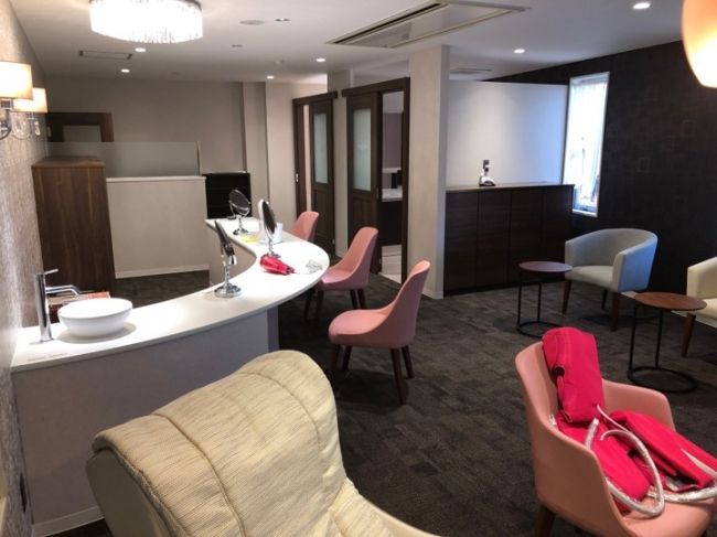 奥州店の「Be-Lounge」のコンセプトは「ラグジュアリーモダンスタイル」。パナソニックの11種類の美容家電・ヘルスケア製品を利用できる。カウンター席には「ヘアドライヤー・ナノケア」や、「スチーマー・ナノケア」、「カールアイロン26mmイオニティ」などの美容家電が備えた。ソファー席には「レッグリフレ」や、「骨盤おしりリフレ」、「マッサージソファー」などのヘルスケア家電を利用できる。