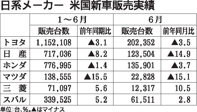 トヨタ自動車など国内乗用車メーカー6社の2019年上期(1~6月)米国新車販売実績は前年同期比3・5%減の319万5316台となった。18年上期は6社とも前年実績を上回ったが、今期は三菱自動車とスバルを除く4社がマイナスに転じた。米国市場...