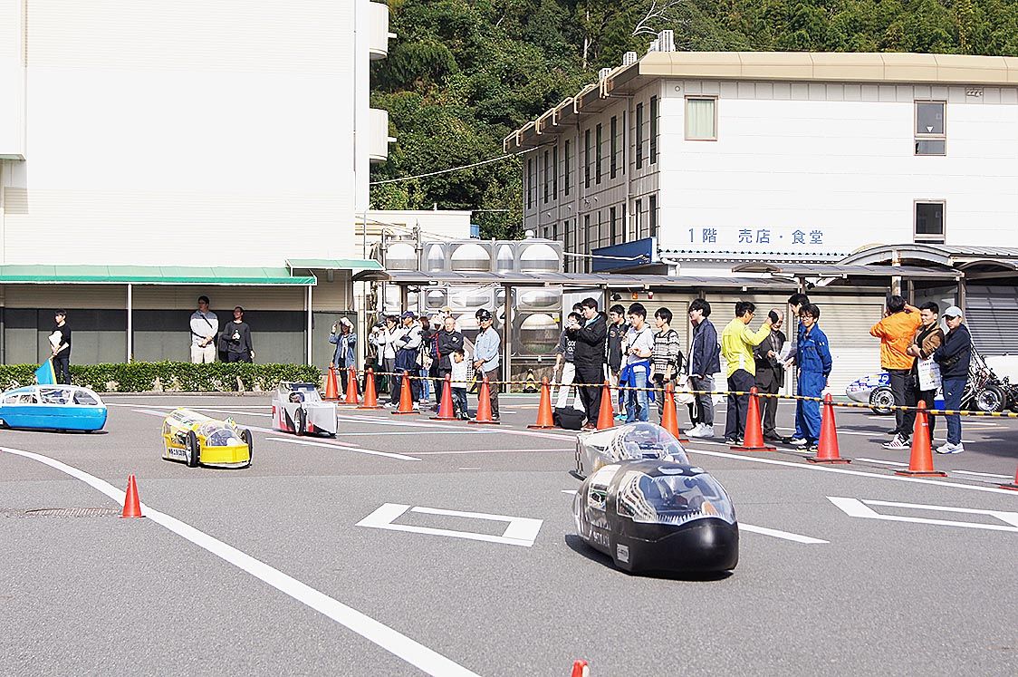 【静岡】静岡県内の高校生が製作した車両で燃費技術などを競う「第27回静岡県高校生エコラン大会」が3日、静岡市葵区の静岡県自動車学校静岡校で開催された=写真。同大会は県立の工業高校11校が参加し、電気自動車とガソリン自動車、燃料電池自動車の...