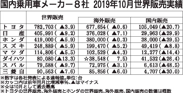 乗用8社、10月の世界販売