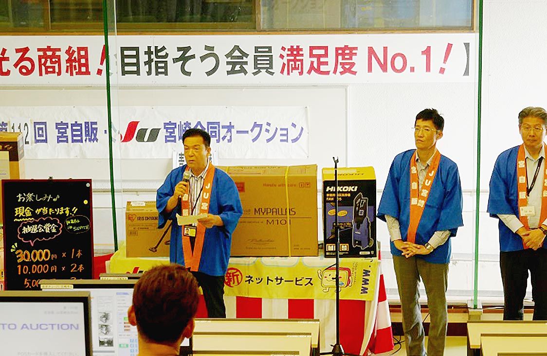 【宮崎】宮崎県中古自動車販売商工組合(JU宮崎、黒木嘉興理事長)は11日、宮崎市高岡町の常設会場で「第112回 宮自販・JU宮崎合同オートオークション(AA)」を開催した。宮崎県自動車販売店協会との合同オークションとなり、総出品台数は28...