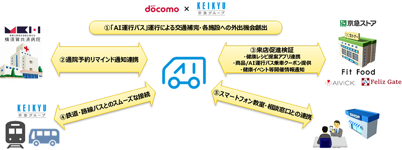 実証実験を実施する逸見地区と周辺はバス路線がない。地区の住民の移動手段としてAI運行バスによるサービスを提供する。国家公務員共済組合連合会横須賀共済病院の電子カルテシステムや、商業施設、健康増進施設などのシステムと連携することで、利用者の利便性向上に加え、健康増進、社会保障費抑制、地域経済活性化の効果などを検証する。