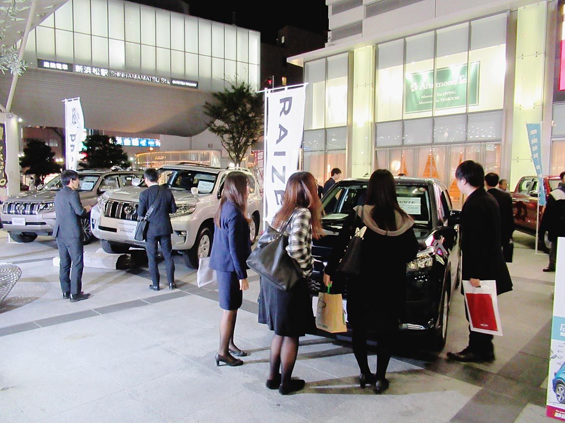 仕事帰りに話題のSUVを体感して―。静岡トヨタ(太田勝之社長)は11月15日、遠州鉄道新浜松駅前の浜松市ギャラリーモール「ソラモ」(浜松市中区)で出張展示イベント「浜松まちなかFriday night SUV展示会」を開催した。 イベント...