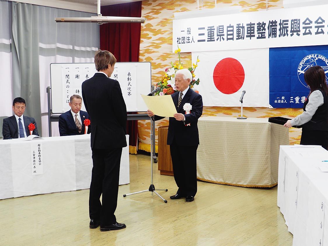 【津】三重県自動車整備振興会(竹林武一会長)は11月12日、津市の三重県自動車整備振興会で「第35回三重県自動車整備振興会会長表彰」を行った=写真。自動車産業、自動車整備業界の発展に貢献した事業役員、自動車整備士、事務局職員合計26人を表...