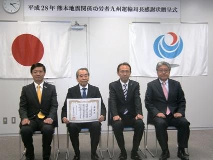 九運局が熊本地震関係功労者表彰 JAF熊本、熊本タク協、九州各ト協を
