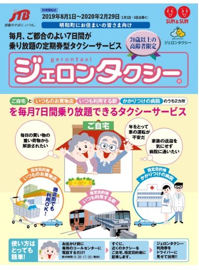 群馬県によると、同県は人口1人当たりの自動車保有台数が全国1位(2018年3月末現在)で、明和町でも自動車が主な移動手段となっていることからタクシー利用は少ない。高齢者による交通事故が社会問題化している中で、免許返納後の、移動手段の確保が課題となっている地域がある。JTBは明和町社会福祉協議会と協力し、タクシーを利用した高齢者の移動支援サービスの事業化を検証する。