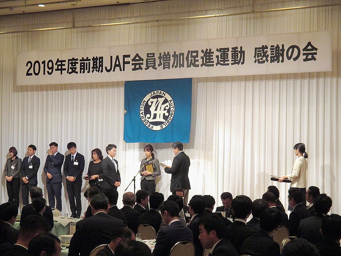 【大分】日本自動車連盟(JAF)大分支部(片岡潔支部長)は11月28日、大分市のトキハ会館で「2019年度前期JAF会員増加促進運動 感謝の会」を開催した=写真。19年4~9月の会員増加促進運動で優秀な成績を残した販社と個人に感謝状を贈呈...