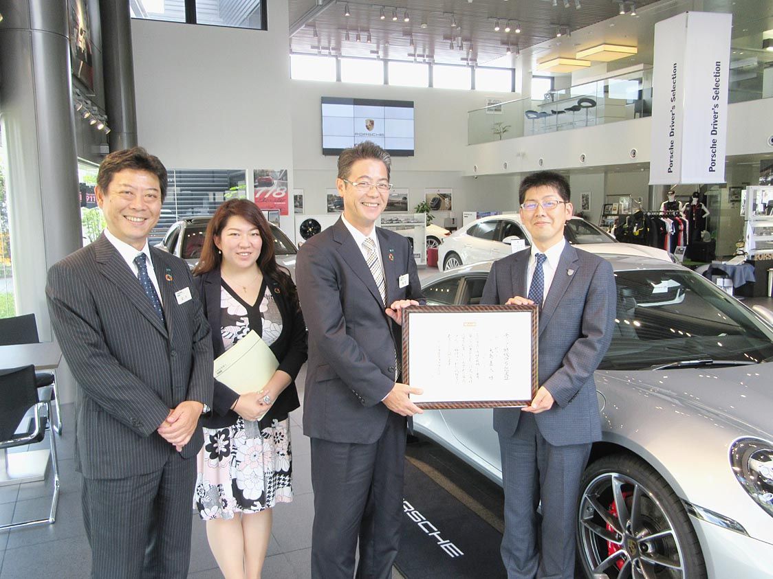 【京都】ポルシェ車正規販売代理店のセフティ(大島嘉人社長)は、三井住友海上火災保険による保険代理店の最上位業務ランクである「ディーラー特級」認定を受けた。7月1日付。 25日、三井住友海上の京都自動車営業部の高野太部長らがセフティ本社(京...