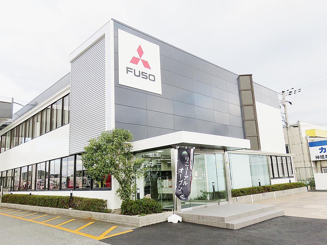 三菱ふそう「姫路支店」リニューアル  営・サ・部品ワンフロア化 電動トラック用 急速充電設備を導入