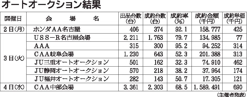 〈オートオークション結果〉中部地区 2025/10/28~11/8
