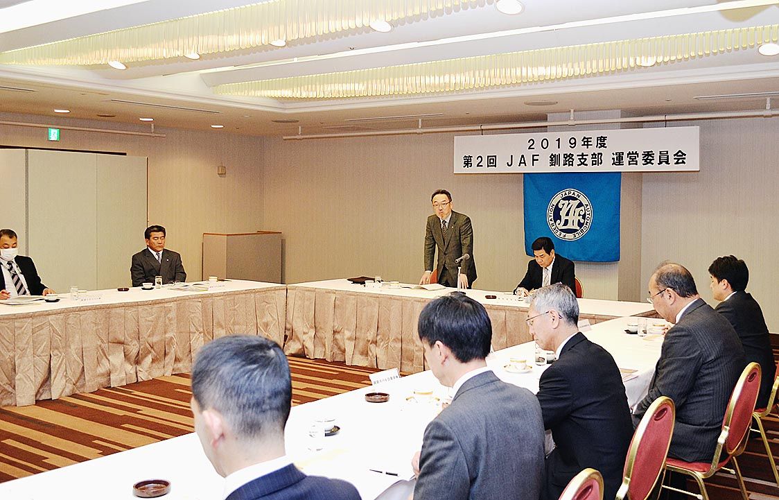 【釧路】日本自動車連盟(JAF)釧路支部(坂根篤支部長)は5日、今年度第2回目の運営委員会を市内のホテルで開催した=写真。年度上半期の活動報告を踏まえ、会員増加促進などの取り組み強化を申し合わせた。 はじめに坂根支部長は「会員拡大に継続的...