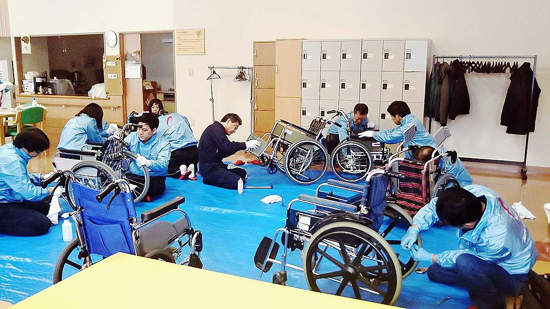 【芦別】AIRオートクラブ北北海道支部(佐々木浩一支部長)はこのほど、芦別市の特別養護老人ホーム「芦別慈恵園」を訪問し、社会貢献活動として車いすの整備と清掃を行った=写真。 同支部会員各社と損保ジャパン日本興亜北北海道支店の社員ら17人が...