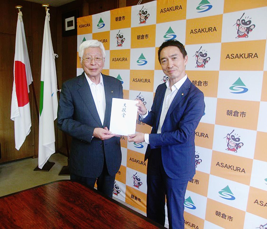 トヨタユーゼック、九州北部豪雨災害の復興願 朝倉市へ浄財寄付