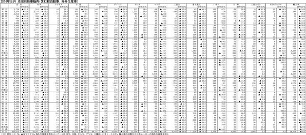 【2014年8月 地域別新車販売(含む軽自動車、海外生産車)】