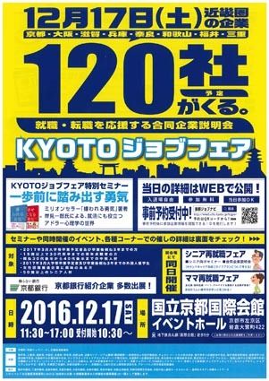 京都府と近畿経済産業局は、17日に国立京都国際会館(京都市左京区)で合同企業説明会「KYOTOジョブフェア」を開催するは告知チラシ。近畿圏の各府県の自治体や経済団体が府県の枠組みを超え、性別や年齢、国籍を問わない多様な人材確保を目指す。各...