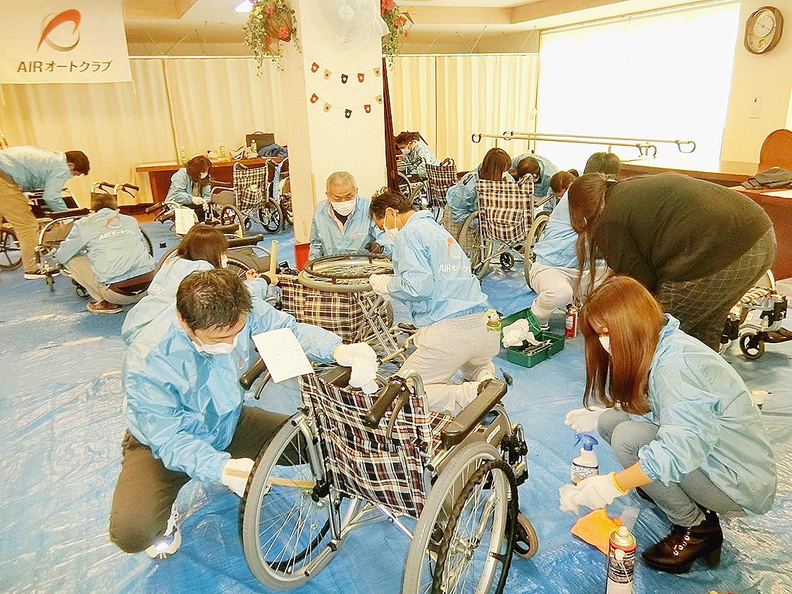 【水戸】AIRオートクラブ茨城南支部(池田雅史支部長)と損害保険ジャパン日本興亜茨城南支店(堀晶雄支店長)は、筑西市の社会福祉法人征峯会特別養護老人ホームしらとり・しらとりハワイアンデイで「車いす整備清掃活動」を行った=写真。 当日は同支...