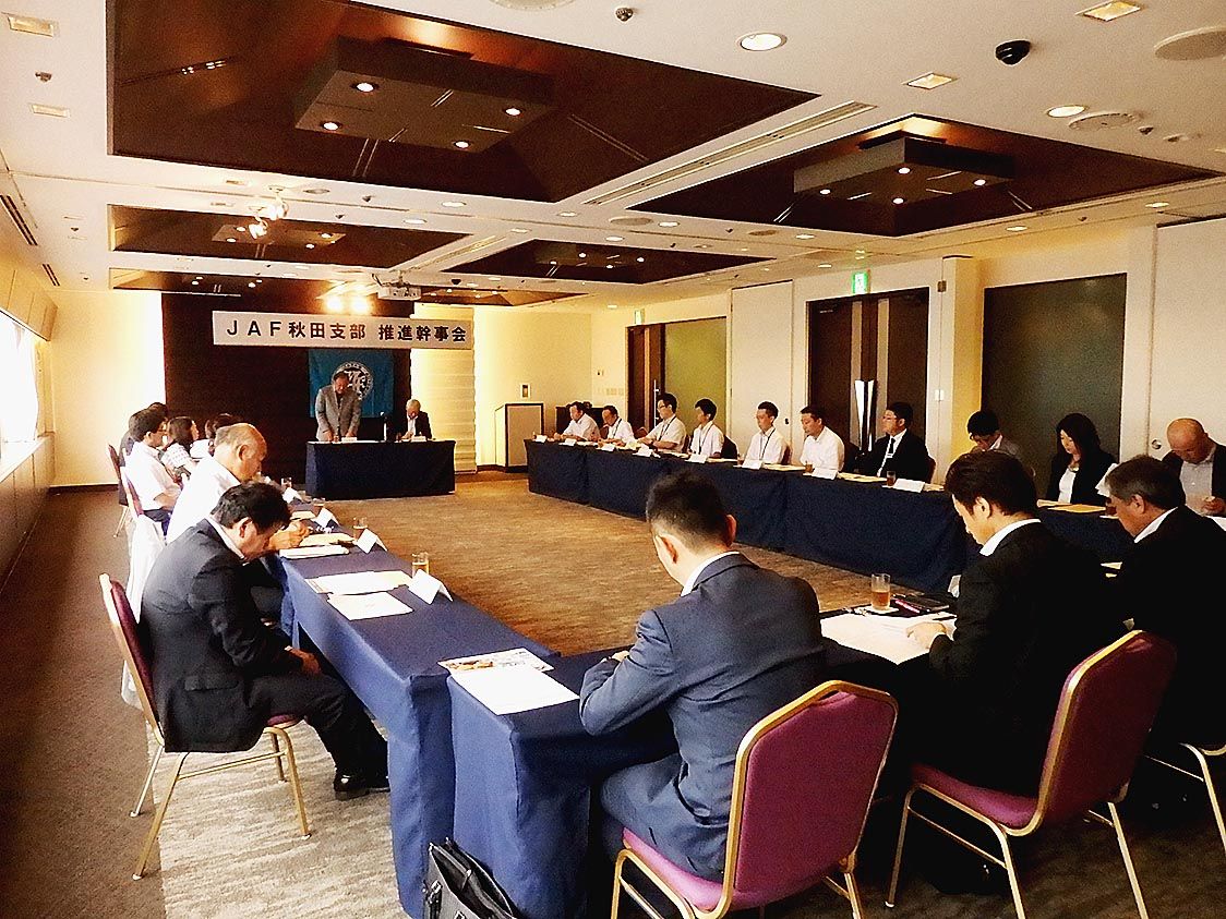【秋田】日本自動車連盟秋田支部(伊藤哲之支部長)は19日、秋田市で「第96回推進幹事会」を開催した=写真。伊藤支部長をはじめ三浦廣巳副支部長やディーラ各社の推進幹事が出席し、2019年年間JAF会員獲得キャンペーンの進捗状況の報告や目標設...