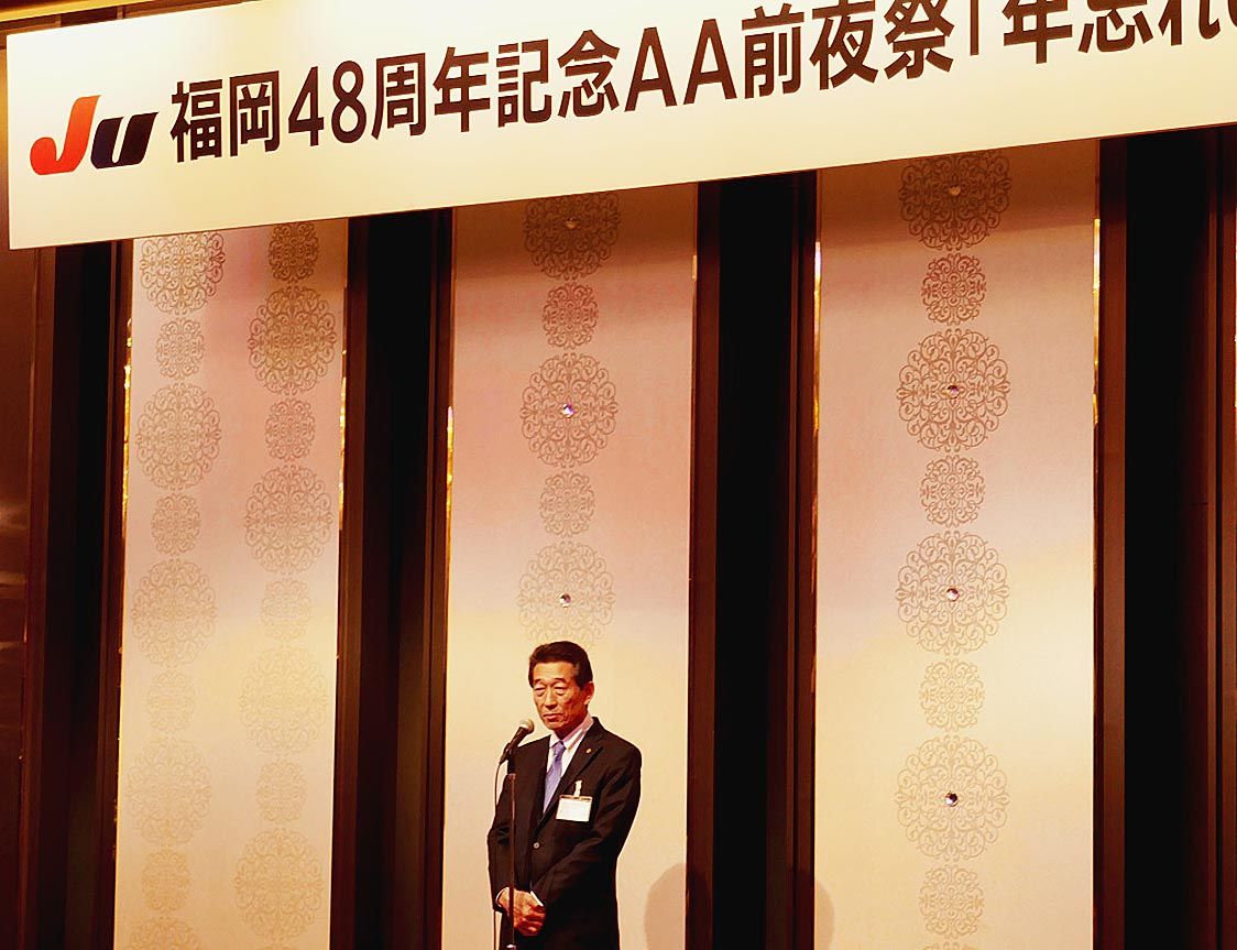 JU福岡は5日、福岡市博多区のホテルで「年忘れの会」を開催した。48周年記念オートオークション(AA)の前夜祭でもあり、来賓や九州地区のJUトップ、取引先関係者ら多数が出席した。 席上で、日本中古自動車販売協会連合会(JU中販連)の海津博...