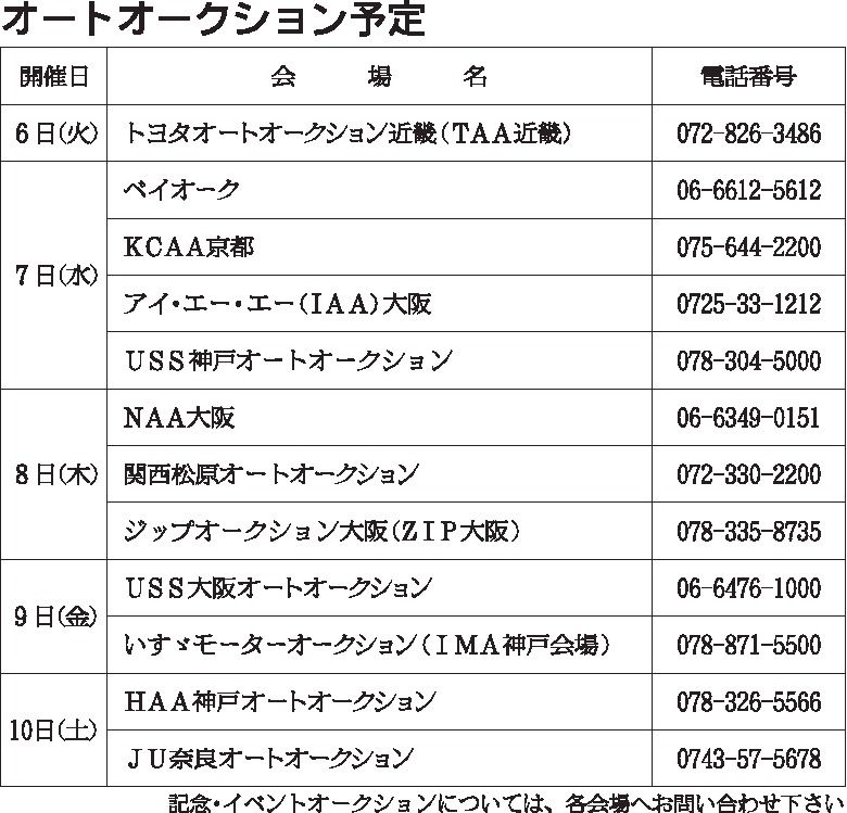 〈オートオークション結果〉 近畿地区 2026/1/12~17