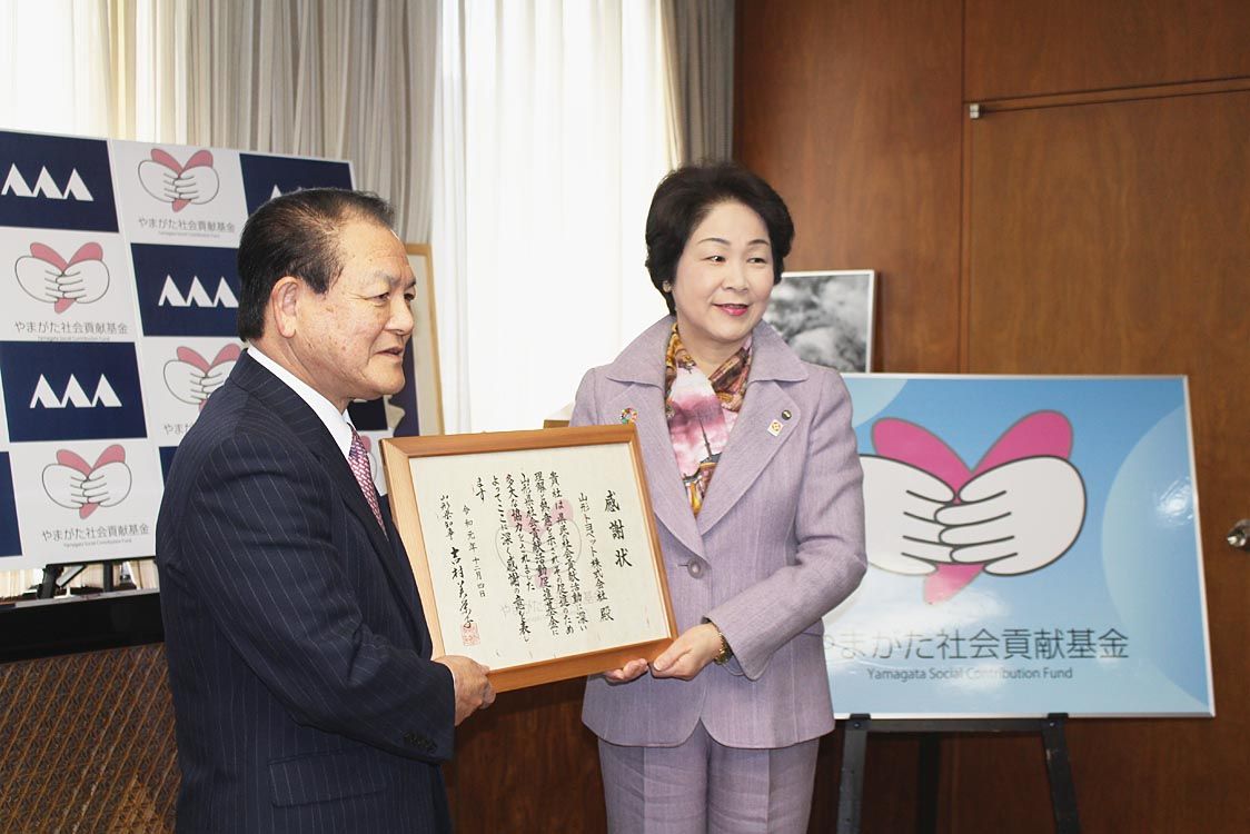 【山形】山形トヨペット(鈴木寿昭社長)は、「やまがた社会貢献基金」に寄付を行った。4日、山形県庁で感謝状贈呈式が行われ、吉村美栄子知事から鈴木社長へ感謝状が手渡された。 同社は2007年から社会貢献の一環として、ハイブリッド車(HV)の販...