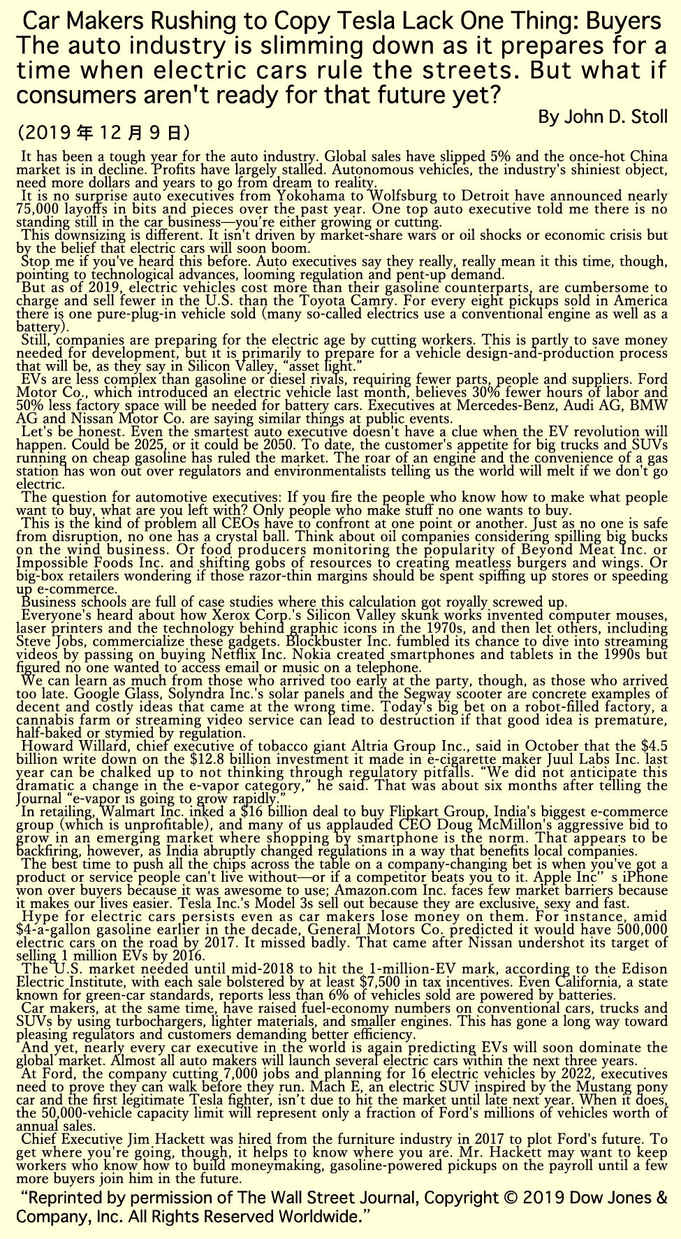 By John D. Stoll 2019 年 12 月 9 日 自動車業界にとって今年は厳しい1年だった。世界販売台数は5%減少し、かつては活況を呈していた中国市場も衰えつつある。利益は伸び悩み、自動運転車は現実のものになるにはさらに多...