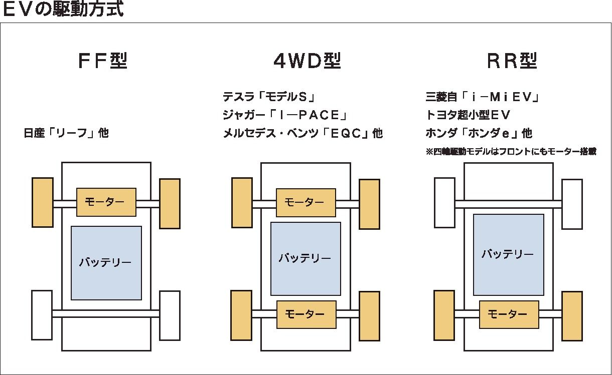 電気自動車(EV)の本格的な普及に向けて駆動形式が多様化しそうだ。内燃機関の場合、重量と体積がかさむエンジンの搭載位置は限られていたが、モーターやバッテリーの設置位置の自由度が高いEVは、メーカーや車型によって各々のレイアウトを採用してい...
