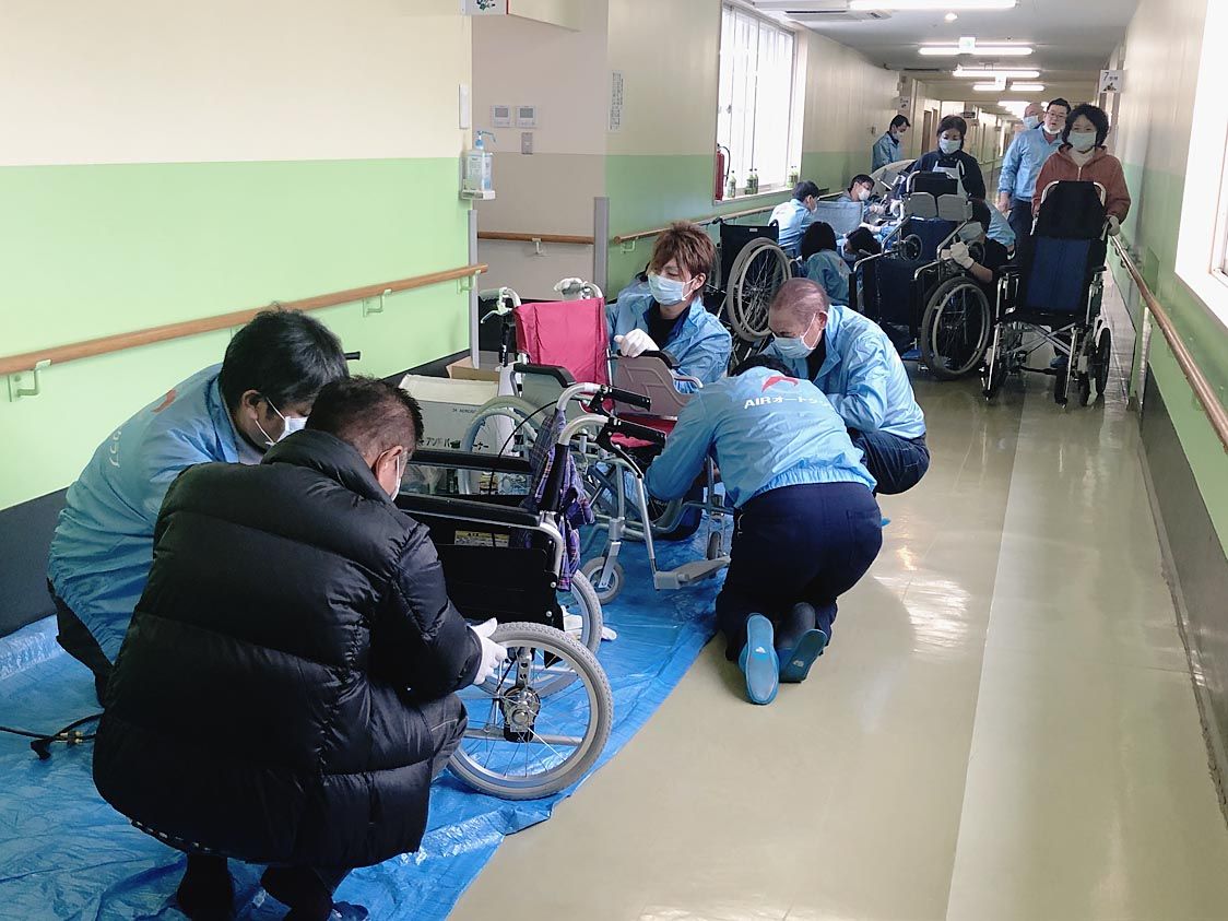 【八戸】損害保険ジャパン日本興亜青森支店(支店長:中川勝支店長)は7日、八戸市の社会福祉法人愛桂会介護老人保健施設ひばりの里で「車いす整備・清掃活動」を実施した=写真。 清掃ボランティア活動は、代理店組織のAIRオートクラブ青森支部とJS...