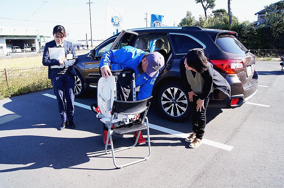 【静岡】日本自動車連盟(JAF)静岡支部(杉山智彦支部長)は11月19日、磐田市の青城小学校東側駐車場で、磐田市立青城こども園の保護者を対象にチャイルドシート取り付けアドバイスイベントを実施した=写真。同イベントは磐田市と共催で行い、今回...