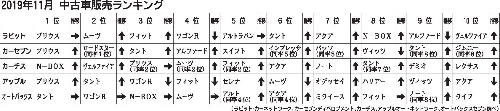 中古車関連企業6社は、11月の中古車販売、査定・買取実績(ユーポスは買い取りのみ)をまとめた。販売は、トヨタ自動車「プリウス」が3社でトップを獲得した。ホンダ「N―BOX」も1社で1位になり、引き合いが強くなっている。査定・買い取りでは、...